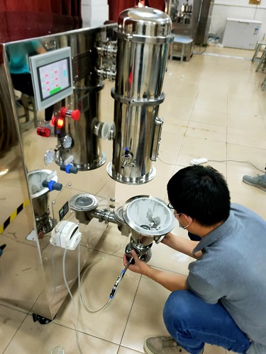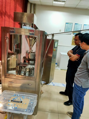 2022年6月24日,我廠技術人員周工前往青島農業大學對購置的鋁塑包裝機、全自動膠囊填充機、高效濕法混合制粒機、流化制粒包衣干燥機進行安裝調試,并就設備的使用對學校老師進行培訓。