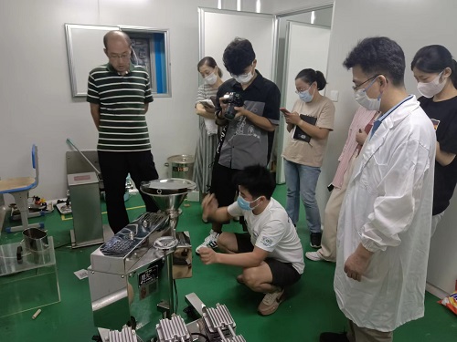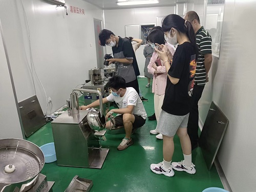 2022年9月1日,外省設備調試地點山東青島職業技術學院,我廠安排技術人員周武前往,對其購置的口服液洗烘灌軋聯動機組,薄膜包衣機等設備進行了安裝調試,隨后指導學校相關老師對設備的使用和實際操作,并就設備的維護保養及注意事項做了詳細的講解。