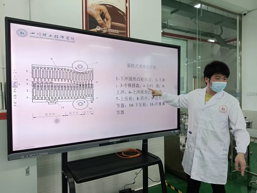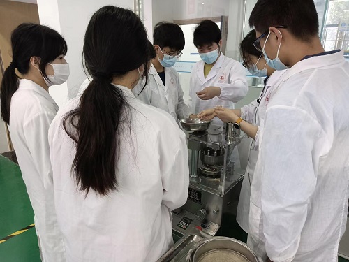 2022年4月23-26日,外省設備調試地點四川理工技師學院溫江校區,我廠安排銷售經理李玉冰、技術人員周武、王凱東前往,對其購置的壓片機、篩片機、濕法制粒機、口服液洗烘灌軋聯動機組進行了安裝調試,隨后指導學校相關老師對設備的使用和實際操作,并就設備的維護保養及注意事項做了詳細的講解。
