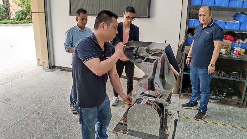 5月24日下午,客戶帶著物料來我廠試機,針對物料的特性,技術人員使用CS系列粗碎機對物料進行粉碎,其成品的效果,客戶看后很是滿意,隨后沈經理又向客戶介紹了我廠生產的設備,對設備的使用性質等作了講解。