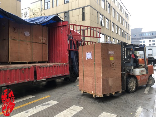 生產廠區內,發貨班組正緊張有序的操作著行車,將發往鄭州醫藥健康職業學院的設備進行裝車、固定。質檢人員對已打包設備的各部件進行著出廠前的檢查和清點,以確保此次發貨能圓滿結束,并安全交付河南客戶現場。