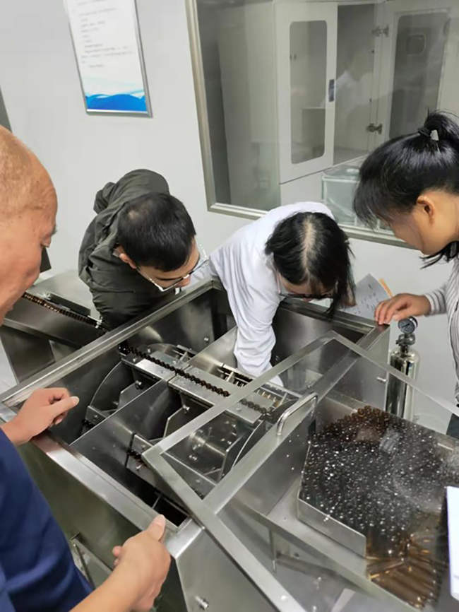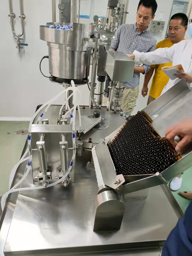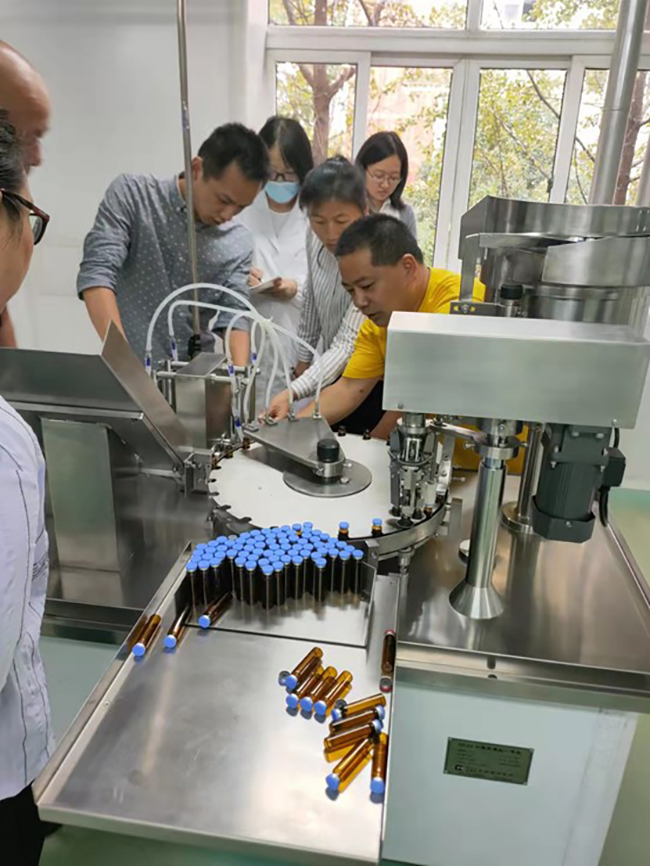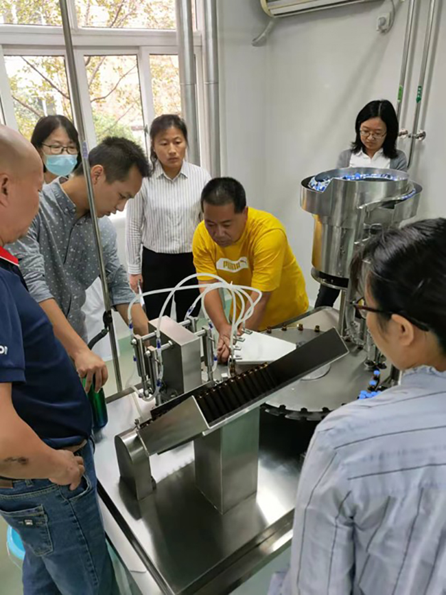 2021年10月13日,我廠派遣技術人員前往浙江醫藥高等專科學校對購置的CXP型超聲波洗瓶機、DGZ4口服液灌軋一體機進行安裝調試,并就設備的使用對學院老師進行了培訓。