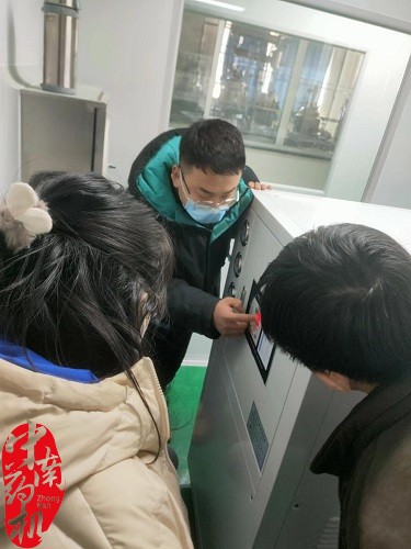 今年3月,天津現代職業技術學院新建實訓車間,對購置的第一批凍干粉針劑生產線:ZNHX-300型回轉式超聲波洗瓶機、RXH-3.5型高溫滅菌隧道烘箱、CZLY-2型冷凍干燥機等設備,我廠技術工程師再次到達現場指導安裝調試。