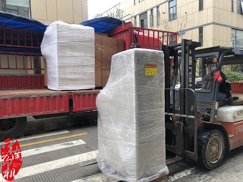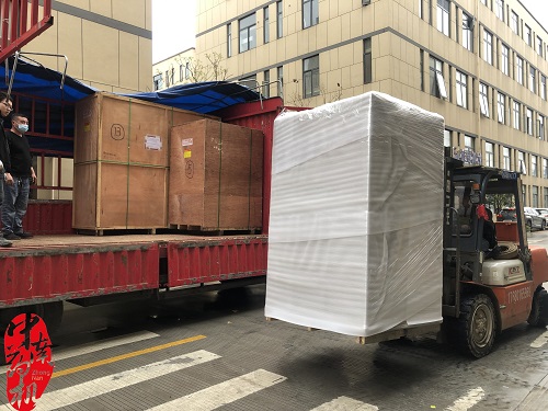 生產廠區內,發貨班組正緊張有序的操作著行車,將發往鄭州醫藥健康職業學院的設備進行裝車、固定。質檢人員對已打包設備的各部件進行著出廠前的檢查和清點,以確保此次發貨能圓滿結束,并安全交付河南客戶現場。