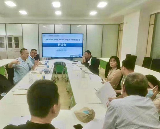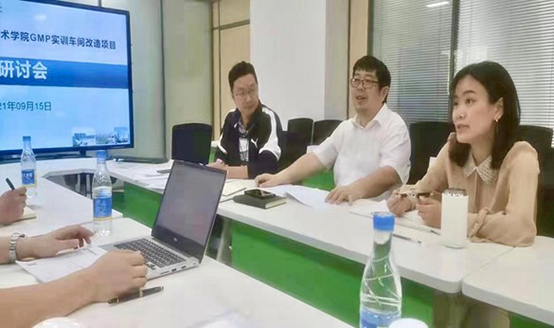 2021年9月15日,時隔半月,總經理何靖之一行人再次前往江蘇食品藥品職業技術學院,向制藥工程學院的領導及專家組匯報1+X藥物制劑設備選型方案,研討會上,經過詳細溝通、熱烈討論、實地勘測,初步擬定藥物制劑方案,為下一步細化方案打好基礎。